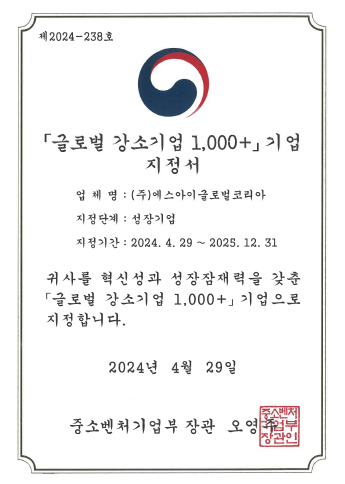 Ministry of SMEs and Startups – Global Small Giant (Growth Company) Designation Certificate